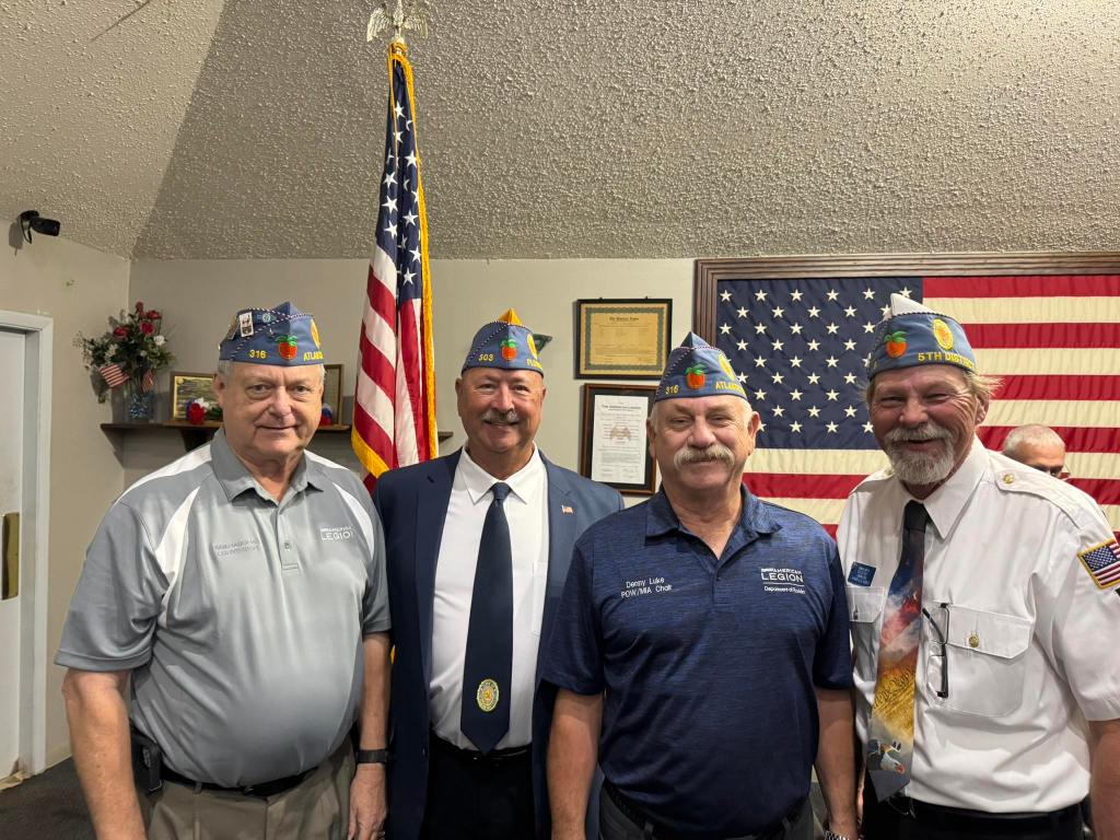 September 14, 2025 – The 5th District American Legion FL meeting at Post 88, Jacksonville, Florida. In photo, PNC Clarence Hill, Florida Detachment Commander Michael Nigbor, Squadron 316 Commander Denny Luke, and 5th District Detachment Commander Darien Smith.